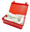 Съдържание:Левкопласт 5х2,5см DIN1 3019-A 1 брКомплект от 14 кръпки DIN 13019-E:4 бр. Лепенки 10х6 см, 2 бр Еластични лепенки за върховете на пръстите 4х5 см,2 бр Еластични лепенки за върховете на пръстите 12x2 см,2 бр. Водоустойчиви пластири 1.9x7.2cm индивидуално опаковани,4 бр. Водоустойчиви пластири 2,5x7,2 см, индивидуално опакованиСтерилни ленти 8х10см DIN 13151-M 2 брБинт стерилен 6х8см DIN 13151-K 1 брБинт стерилен 10х12см DIN 13151-G 1 брПревръзка стерилна 60х80см DIN 13152-A 1 брФиксираща марля 6cmx4m DIN 61634-FB6 индивидуално опаковани 2 бр.Фиксираща марля 8cm x4m DIN6 1634-FB8 индивидуално опаковани 3 бр.Топлоизолационно фолио Gold/Silver 210x160cm 1 брКомплект 2 броя стерилни превръзки 10Х10СМ 3 брБинт триъгълен 96x96x136cm DIN 13168-D 1 бр.Ножица 145mm DIN 58279-A 1 брЕднократни ръкавици DIN-EN456 1-3 4 бр
