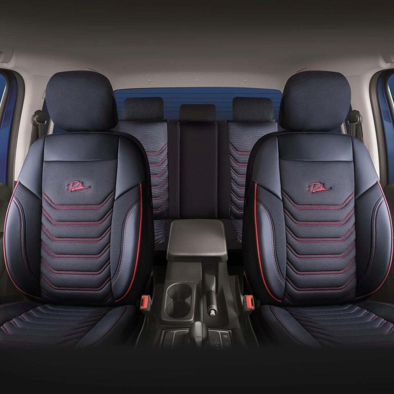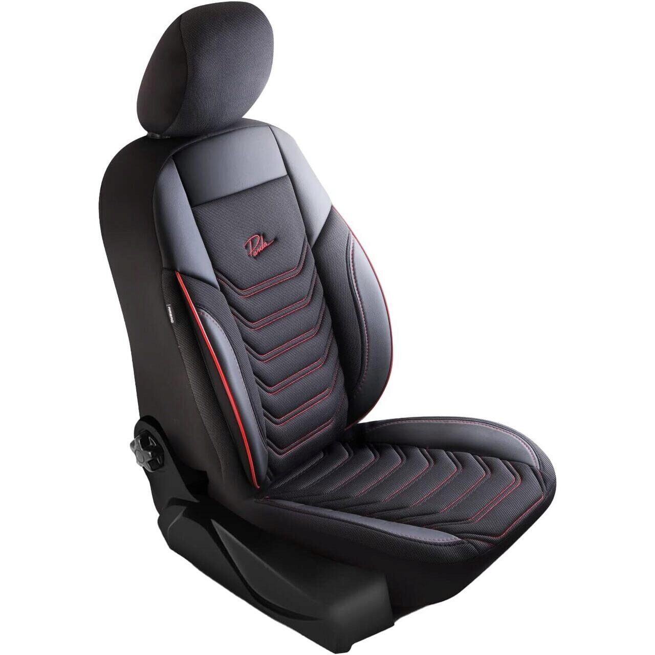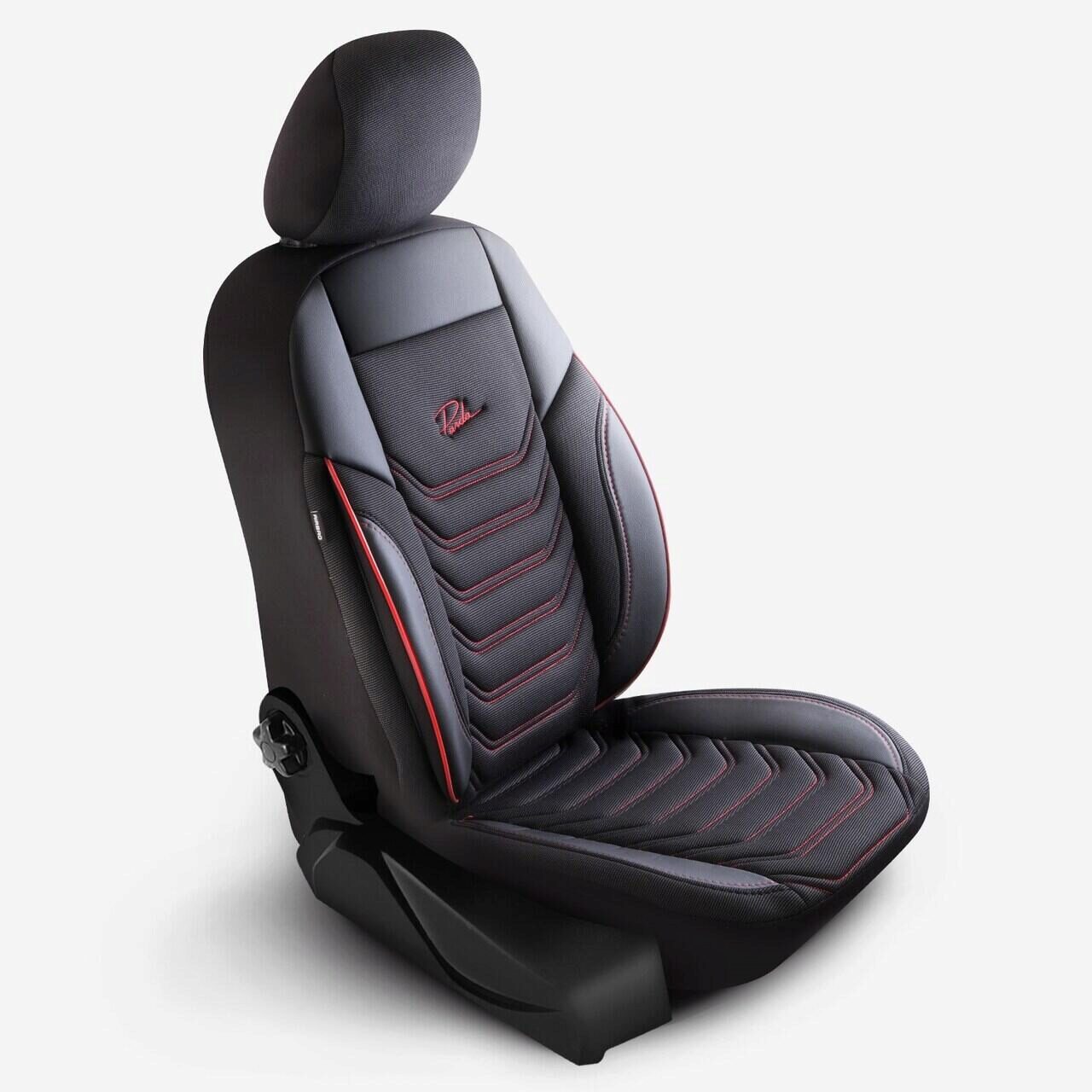 Комплект калъфи за седалки Panda Florida, черни с червени шевове, 11 бр