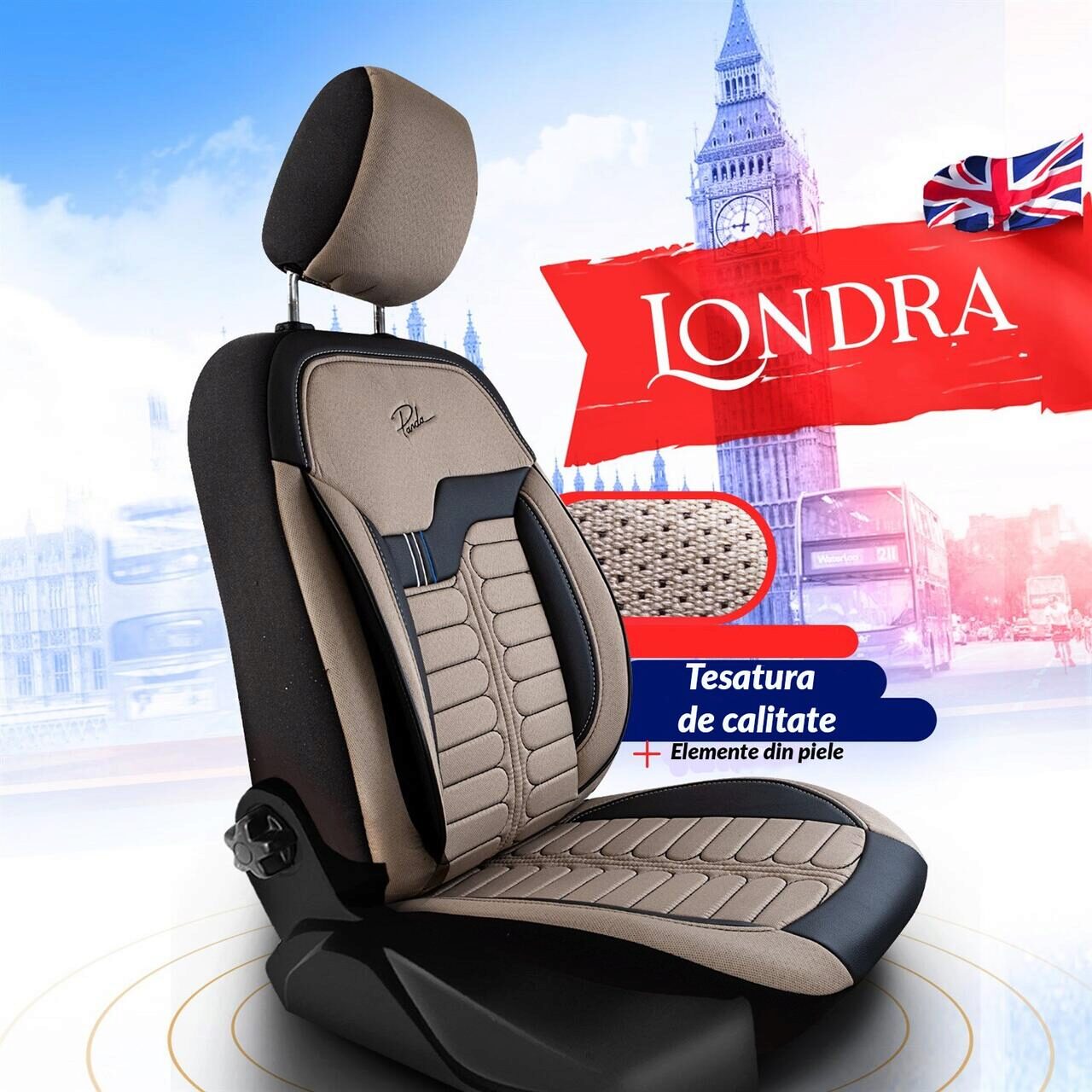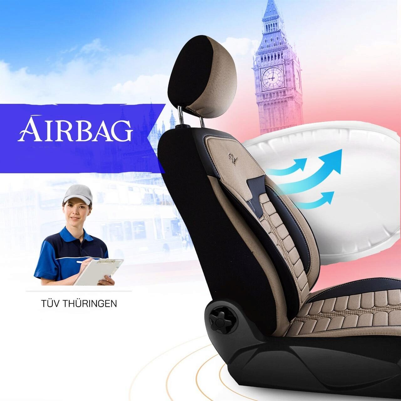 Комплект калъфи за седалки Panda London, разделяне на задната седалка, бежово - черни, 11 части