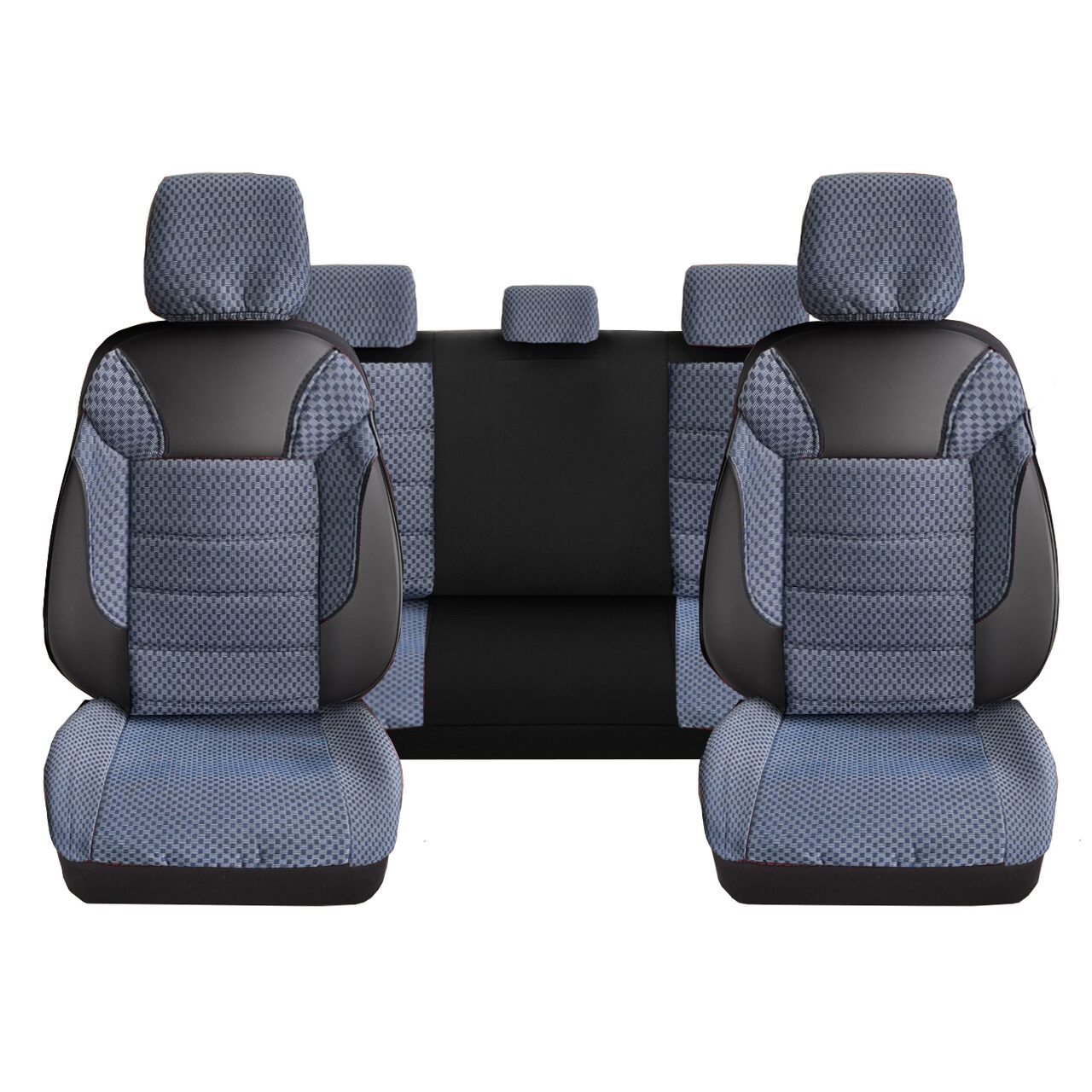 Калъфът за задната седалка може да бъде разделен на 1/3 и 2/3. Предните корици имат джоб за съхранение. Размери на капака: Предна седалка - 56см х 45см Предна облегалка - 74 см х 51,5 см Задна пейка - 129см х 60см Задна облегалка – 150см х 81см Предни подглавници - 29см х 25,5см Задни подглавници - 30,5см х 25см Тегло: 1.8 Kg; Материал: Текстил + синтетична кожа; Размери на опаковката: 60 ​​см х 12 см х 50 см;