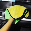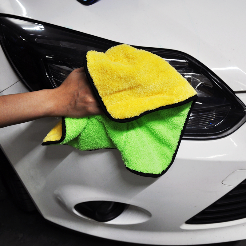 - в същото време, премахва мазнините от повърхностите, както и всички видове остатъци от полирането на автомобила, придавайки желаният блясък.