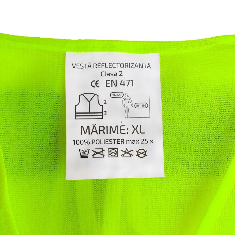 Продуктът е съобразен със сигурността, предоставени от стандарти EN 471, клас 2, обекти с висока видимост (сертификат 60017047 BP 0001). Тип опаковка: PVC чанта