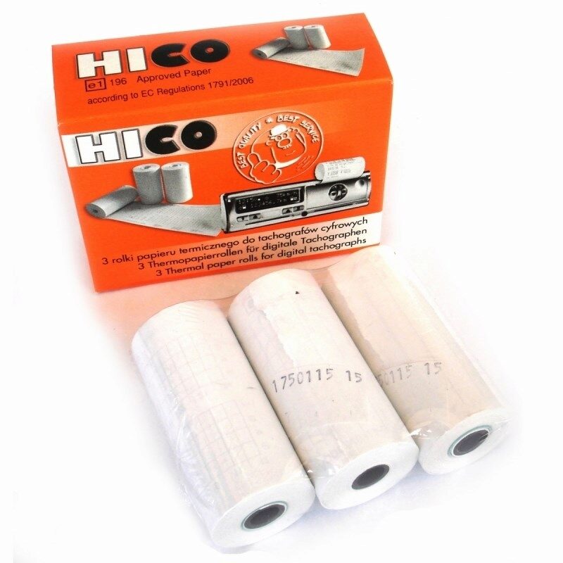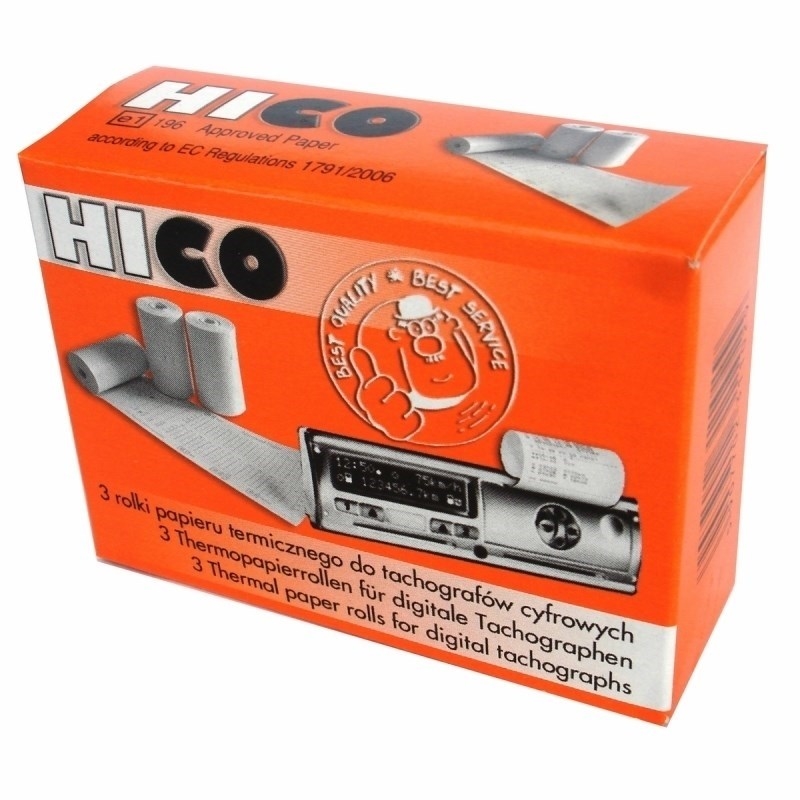 Cъдържа: 3 ролки Термохартията за тахограф HICO е създадена специално за условията в автомобилната кабина съгласно изискванията на закона. В съответствие с Директива ЕО 1791/2006