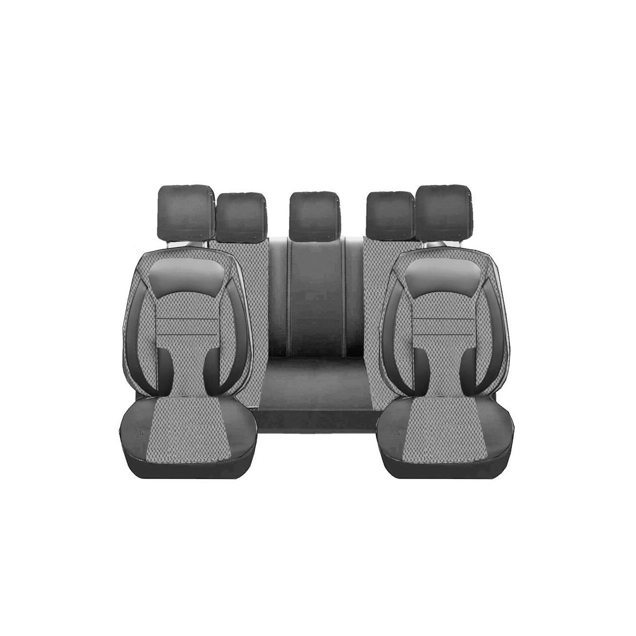 Калъфът за задната седалка може да бъде разделен на 1/3 и 2/3. Предните корици имат джоб за съхранение. Размери на капака: Предна седалка - 56см х 45см Предна облегалка - 74 см х 51,5 см Задна пейка - 129см х 60см Задна облегалка – 150см х 81см Предни подглавници - 29см х 25,5см Задни подглавници - 30,5см х 25см Тегло: 1.8 Kg; Материал: Текстил + синтетична кожа; Размери на опаковката: 60 см х 12 см х 50 см;